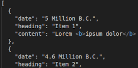 Learn how to create timelines using external JSON configuration files to store your data instead of using inline HTML attributes. There are many advantages to using this method.